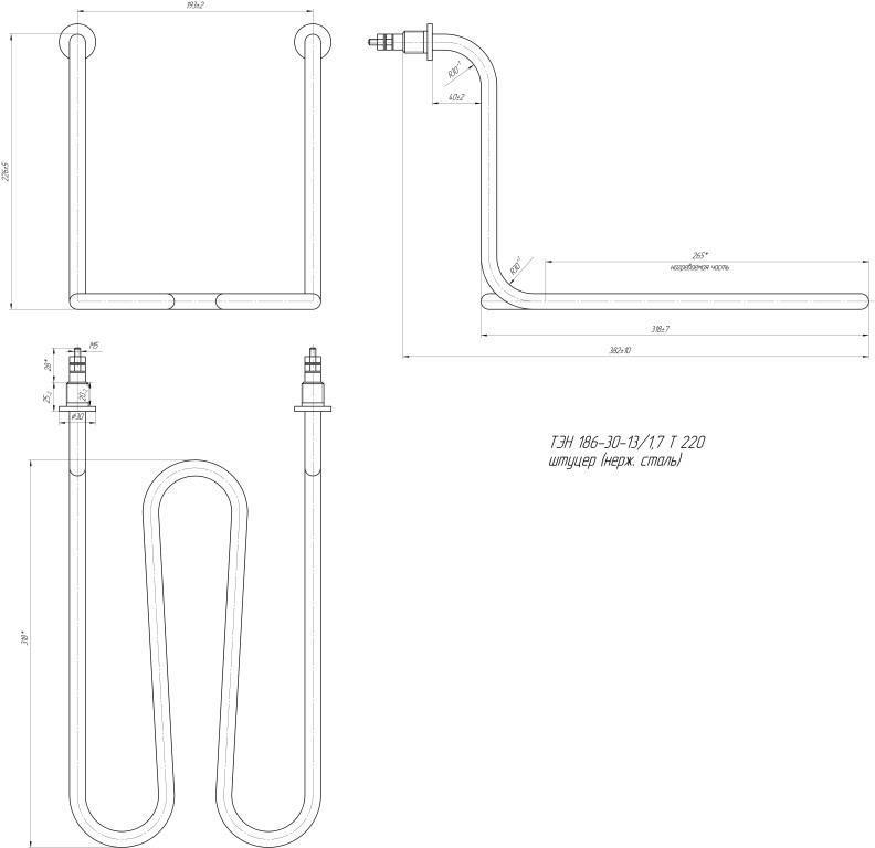 Купить ТЭН для гальванической ванны 186-30-13/1,7 J 220 в компании "Марион". Применяется в промышленном оборудовании, изготовлен из материала Нержавеющая сталь, диаметр трубки 13 мм. В качестве варианта подключения - резьбовая шпилька. Напряжение трубчатого электронагревателя 220 В, мощность 1.7 кВт. Данный товар доступен в нашем каталоге как для онлайн заказа, так и изготовления под заказ. Для того, чтобы приобрести Трубчатый ТЭН для среды "Агрессивные жидкости" оформите заказ на сайте или свяжитесь с нашими сотрудниками.